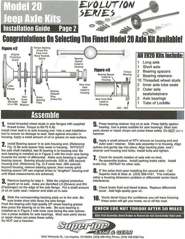 Once you have the order right press the bearings on and install the new inner seal and then the new shafts. Use the old shims and grind the spacer as needed to keep within specs of the instructions as to how much your bearing should come out of the axle housing.
